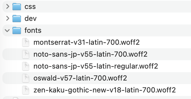 私の場合、テーマフォルダの直下にfonts/ フォルダを作成しました。css/フォルダとは別にしています。