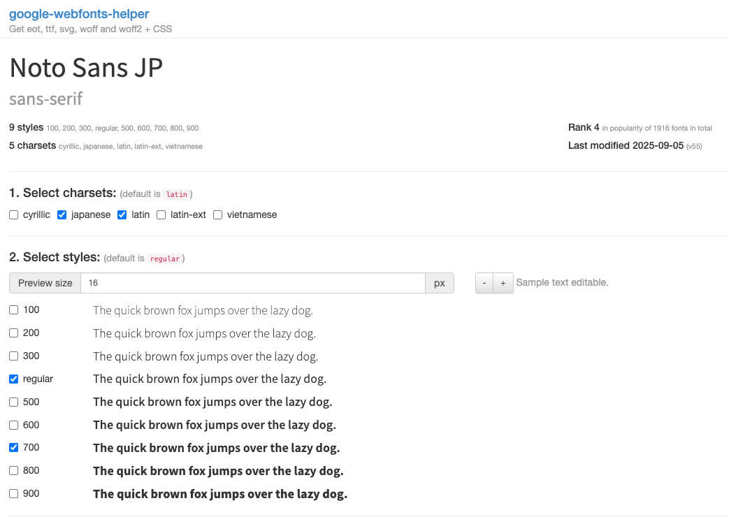 a. フォントを選択(例:Noto Sans JP)